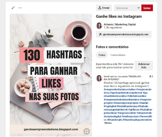 Eu já fiz um post onde eu escrevi mais de 130 hashtags que vocês podem usar para ganhar likes nas suas fotos do instagram, mas essas mesmas hashtags podem ser usadas no seu PIN lá do Pinterest, poder ser usadas no post do seu blog, onde você puder colocar hashtags , você pode usar essas hashtags !!!